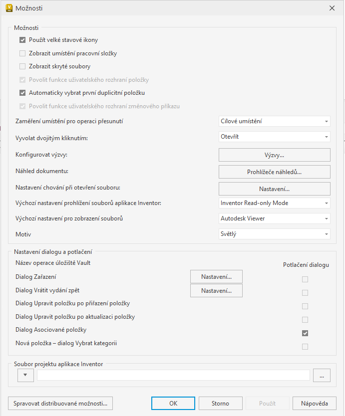 Výchozí nastavení prohlížení souborů aplikace Inventor