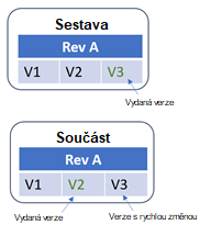 Zde je příklad, kde máme sestavu a součást obě v revizi A.