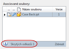 Všechna sekundární propojení budou skryta. Počet skrytých propojení se soubory se zobrazí v levém dolním rohu okna Asociované soubory.