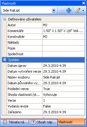 Vlastnosti jsou odděleny na základě toho, zda jsou definovány systémem nebo uživatelem. Chcete-li zkontrolovat vlastnosti těchto definic, můžete každou skupinu sbalit nebo rozbalit.
