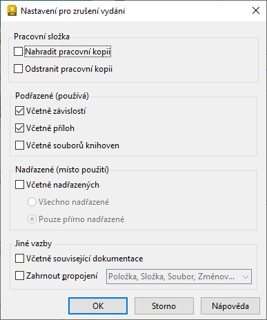 Při potlačení dialogu Zrušit vydání můžete určit, jak odpovídající operace v úložišti ovlivní související soubory.