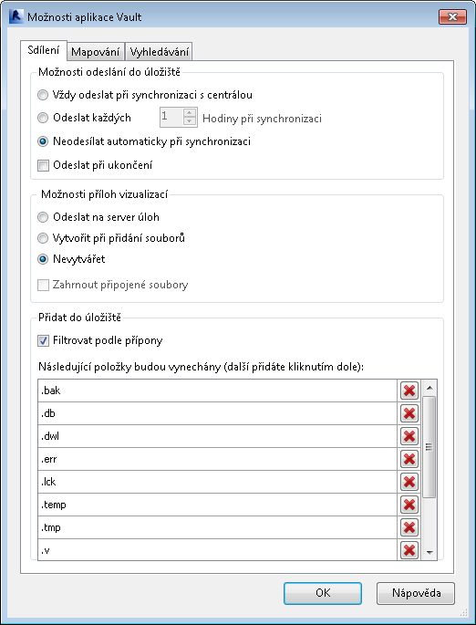 Konfigurace možností sdílení doplňku Vault pro aplikaci Revit