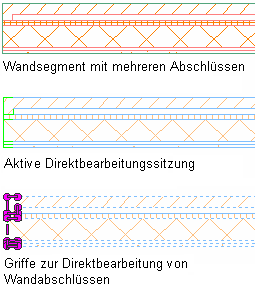 Anzeigen von Griffen zur Direktbearbeitung von Wandabschlüssen