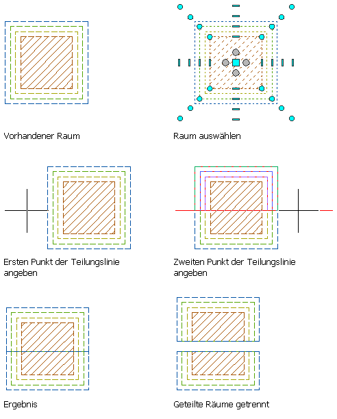 Achtung: Wenn Sie einen Raum mit manuell festgelegten Umgrenzungsversätzen teilen, stellen Sie sicher, dass alle Umgrenzungen aktiviert sind. Nicht aktivierte Umgrenzungen werden nicht getrennt.