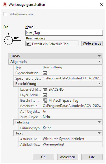 Gehen Sie folgendermaßen vor, um ein Bauteilstempelwerkzeug zu erstellen und es in eine Werkzeugpalette einzufügen. Sie sollten Werkzeuge erstellen, die verschiedene Informationen als Attribute für verschiedene Objekttypen anzeigen.