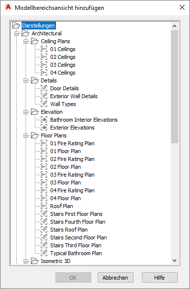 - Wählen Sie im Dialogfeld Modellbereichsansicht hinzufügen die Projektansichtszeichnung, in der die Modellbereichsansicht platziert werden soll, und klicken Sie auf OK.