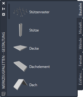 Werkzeugpalette mit Decken- und Dachelementwerkzeugen