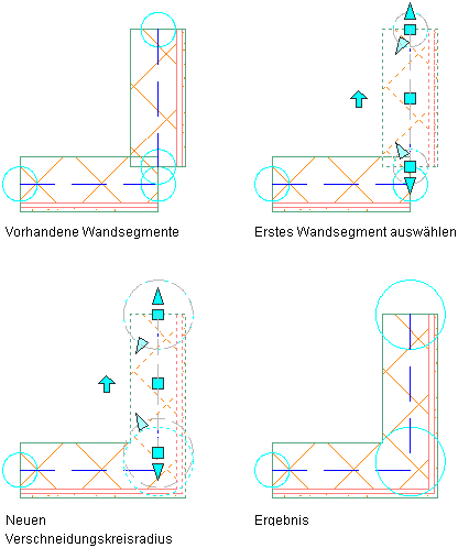 Anpassen des Verschneidungskreisradius einer Wand zum ordnungsgemäßen Verschneiden