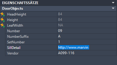 Gehen Sie wie folgt vor, um Werte für manuelle Eigenschaften für ein oder mehrere Objekte einzugeben. Wenn Sie z. B. einen Hinweis eingeben möchten, die für mehrere Türen in einer Zeichnung gelten soll, können Sie die Türen auswählen und den Hinweis in Datenform unter Anmerkungen eingeben.