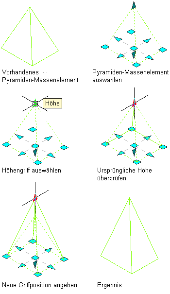 Bearbeiten eines Pyramiden-Massenelements mit seinem Höhengriff
