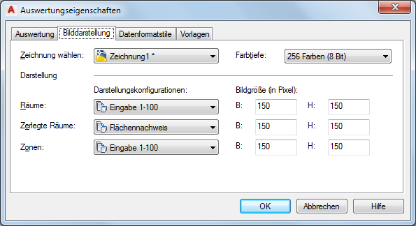 Anmerkung: Wenn Sie mehrere geöffnete Zeichnungen in die Auswertung einbeziehen möchten, müssen Sie die Bildeigenschaften für jede geöffnete Zeichnung separat festlegen.
