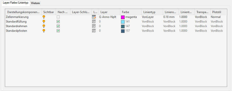 - Klicken Sie auf die Registerkarte Layer/Farbe/Linientyp.