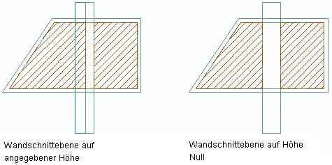 Damit bei der Erzeugung von Räumen Wand-Sweeps und Wandmodifikatoren als Umgrenzung eines assoziativen Raums berücksichtigt werden, muss als Höhe der Schnittebene für die Wand mit dem Sweep oder dem Modifikator der Wert 0 festgelegt sein.
