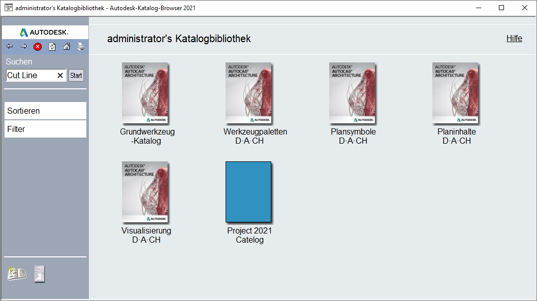 Gehen Sie wie folgt vor, um den Katalog-Browser über eine Windows-Eingabeaufforderung zu öffnen, auch wenn AutoCAD Architecture 2027-Toolset momentan nicht geöffnet ist.