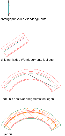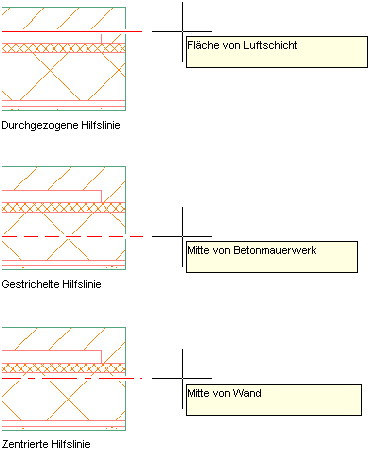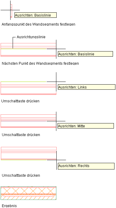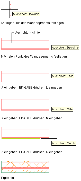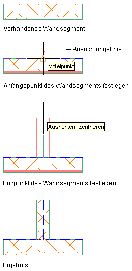 | Festlegen der Punkte, die die Mittellinie der Wand definieren | Wählen Sie unter Ausrichten die Option Mitte. |