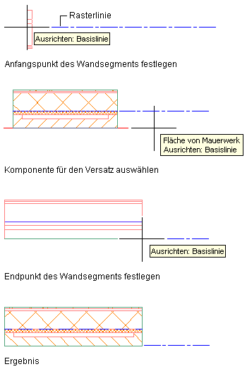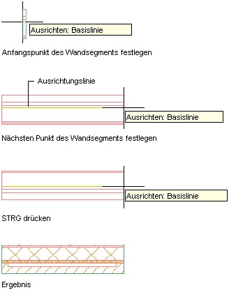| Wählen der Punkte, die die Basislinie der Wand definieren | Wählen Sie unter Ausrichten die Option Basislinie. |
