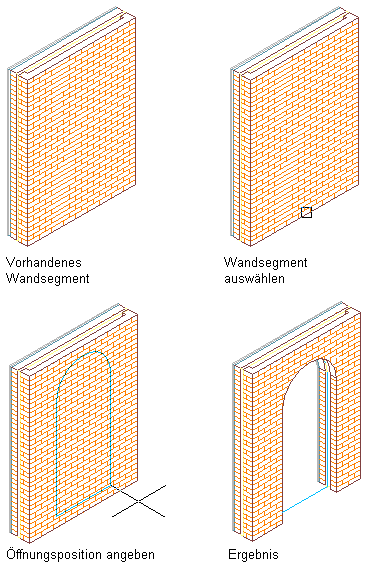Erstellen einer Öffnung in einer Wand Wählen Sie die Wand, und definieren Sie entlang der Wand einen Einfügepunkt.