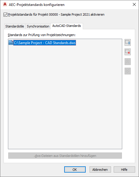 Gehen Sie wie folgt vor, um AutoCAD-Standards für das Projekt einzurichten.