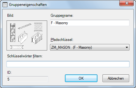 | Pfadschlüssel | Ein Eintrag aus der Datenbanktabelle DirKeys; dieser Wert besteht aus einer Verknüpfung bzw. einem Alias und gibt die Position von datenbankexternen Zeichnungs- und Bilddateien für diese Gruppe an. |
