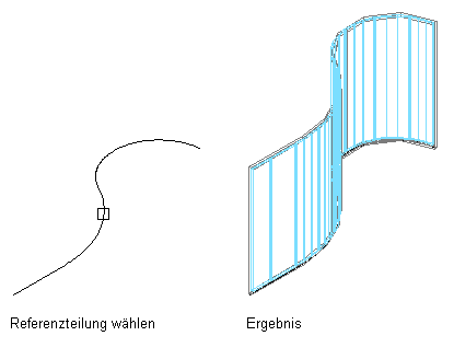 Referenzierte Basiskurve. Besteht die zu referenzierende Geometrie aus mehreren Segmenten, müssen Sie diese Vorgehensweise für die einzelnen Segmente wiederholt durchführen.