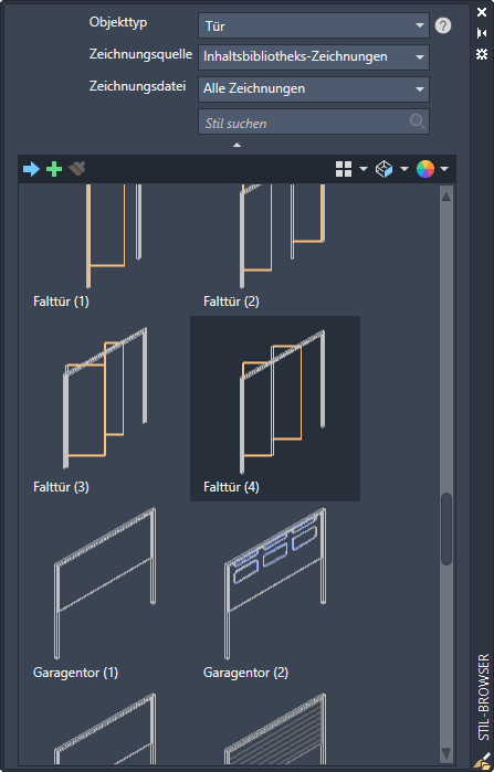 Durchsucht Objektstile, importiert sie in die aktuelle Zeichnung und ruft den entsprechenden Befehl zum Starten der Zeichnung mit dem ausgewählten Objekt auf