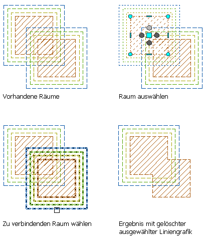 Wenn die Raumumgrenzungen der zu verbindenden Räume durch unterschiedliche Methoden bestimmt werden, wird die für den ersten ausgewählten Raum geltende Methode für den resultierenden Raum verwendet.
