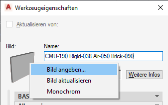 Wenn Sie ein neues Werkzeug einer Werkzeugpalette hinzufügen, wird entweder das Symbol des Werkzeugs, von dem es kopiert wurde, oder ein Standardsymbol angezeigt. Sie können dies ändern, indem Sie ein neues Symbol aus einer Bilddatei oder von einem Objekt in der Zeichnung wählen. Das Symbol kann auch als einfache monochrome Liniengrafik angezeigt werden.