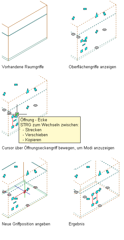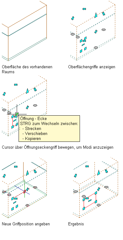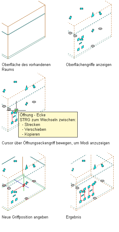 | Kopieren der Öffnung auf der Oberfläche | Drücken Sie die STRG-Taste zweimal, und kopieren Sie die Öffnung an die gewünschte Position. |
