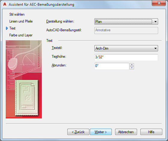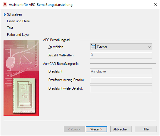 Wählen Sie den zu bearbeitenden AEC-Bemaßungsstil, und klicken Sie auf Weiter.