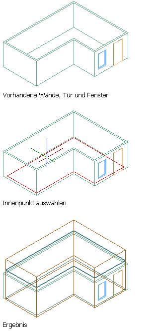 Wände (links) und aus Wandumrissen erzeugter Raum (rechts)