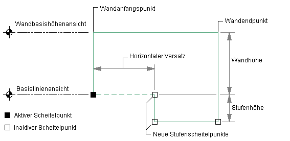 Gehen Sie wie folgt vor, um der Ober- oder Unterkante einer Wand eine Stufe hinzuzufügen. Sie können eine Stufe auch in der Eigenschaftenpalette über das Arbeitsblatt für die Ober- und Unterkante hinzufügen.