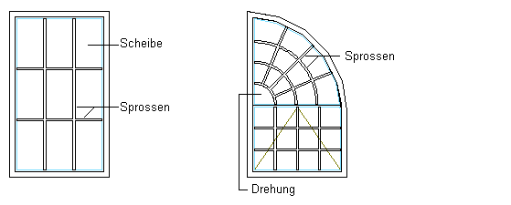 Sie können benutzerspezifische Formen bei Fenstersprossen durch Erstellen von Profilen aus Polylinien herstellen und diese zu einem neuen Fensterstil hinzufügen.