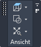 Die verschiebbare Gruppe Ansicht bietet Zugriff auf Befehle für Ansichten, visuelle Stile und Zoom- und Pan-Werkzeuge. Diese Gruppe ist standardmäßig nicht fest in die Multifunktionsleiste eingebunden, und Sie können unabhängig von der aktuellen Multifunktionsleisten-Registerkarte darauf zugreifen. Sie können die verschiebbare Gruppe Ansicht bei Bedarf an der Registerkarte Start fixieren.