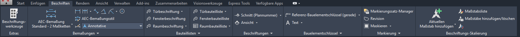 Die Registerkarte Beschriften enthält Befehle zum Beschriften der Zeichnungsdateien.