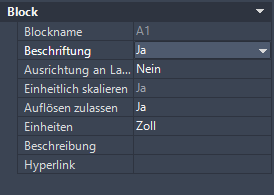 - Wählen Sie auf der Eigenschaftenpalette unter Block für Beschriftung Ja.