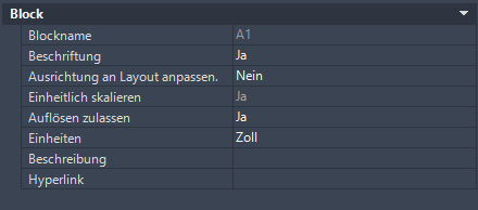 - Wählen Sie auf der Eigenschaftenpalette unter Block für Beschriftung Ja.