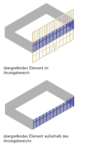 3D-Ansicht eines überspannenden Elements innerhalb und außerhalb des Darstellungsbereichs
