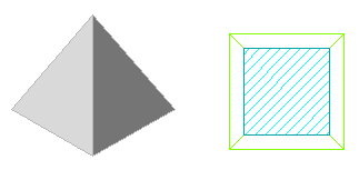 Gehen Sie wie folgt vor, um ein Pyramiden-Massenelement zu erstellen. Der Einfügepunkt eines Pyramiden-Massenelements befindet sich auf dem Schwerpunkt seiner unteren Fläche.