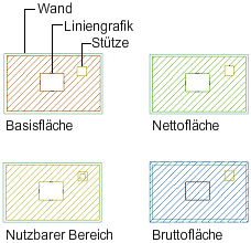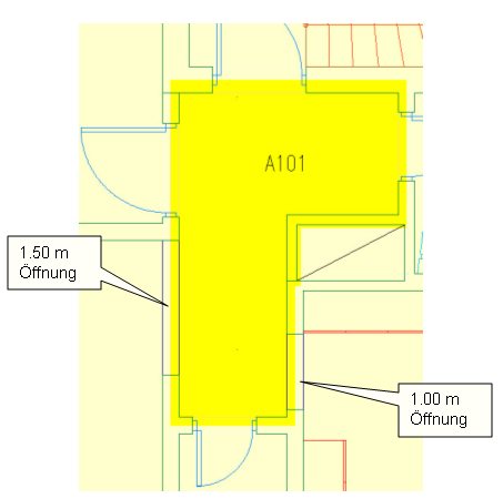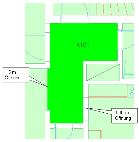 Freistehende Stützen werden als Innenwand berechnet. Die nutzbare Umgrenzung wird um 0,15 m in die Stütze versetzt.
