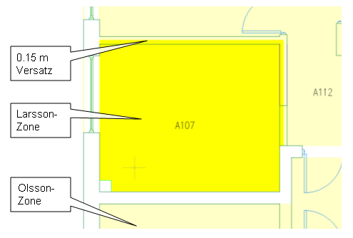 Schächte müssen als "Schacht" klassifiziert werden. Schachträume verfügen nicht über nutzbare Umgrenzungen. Für den nutzbaren Bereich wird "Nicht zutreffend" angegeben. Befindet sich ein Schacht in derselben Zone wie seine angrenzenden Räume, werden bei der Berechnung der nutzbaren Umgrenzungen dieser angrenzenden Räume die ersten 0,15 m des Schachts mitberechnet. Der Abstand wird von der Innenseite der Wand und in den Schacht gemessen. Wenn ein Schacht sich nicht in derselben Zone wie seine angrenzenden Räume befindet, werden die nutzbaren Umgrenzungen der angrenzenden Räume zur Innenseite der Wand gemessen.