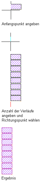 | Einfügen einer bestimmten Anzahl von Komponenten | Geben Sie a (für Anzahl) ein, geben Sie die Anzahl der einzufügenden Elemente an, und klicken Sie, um den Startpunkt für die Reihen anzugeben. Dabei sind die Optionen für X und Y noch immer verfügbar. |