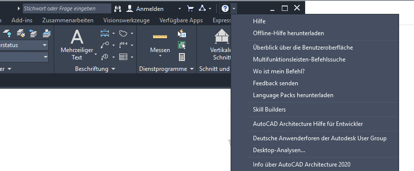Werkzeugkästen wurden aus den Symbolleisten von AutoCAD Architecture 2027-Toolset-Befehlen entfernt. Sie können nun über die Multifunktionsleiste aufgerufen werden.