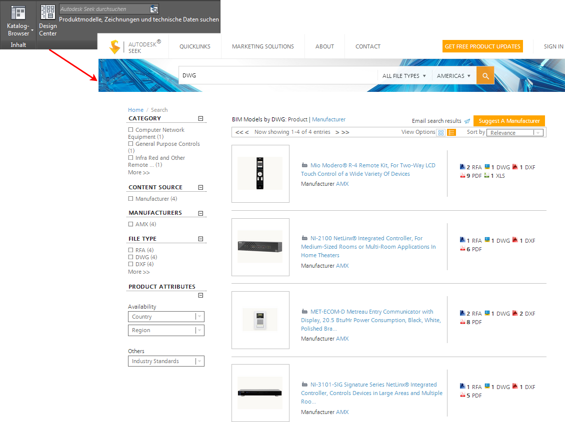 Mit Autodesk Seek finden Sie Informationen zu Produktentwürfen. Viele Anbieter von Inhalten, sowohl Partnerunternehmen als auch einzelne Beitragende, publizieren auf Autodesk Seek. Die Inhalte umfassen 3D-Modelle, 2D-Zeichnungen, Spezifikationen, Broschüren und andere Beschreibungen von Produkten oder Komponenten.