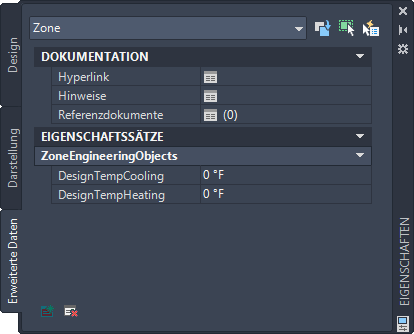 Der Eigenschaftssatz wird der ausgewählten Zone hinzugefügt und kann auf der Registerkarte Erweiterte Daten angezeigt werden.