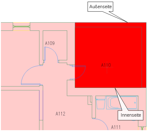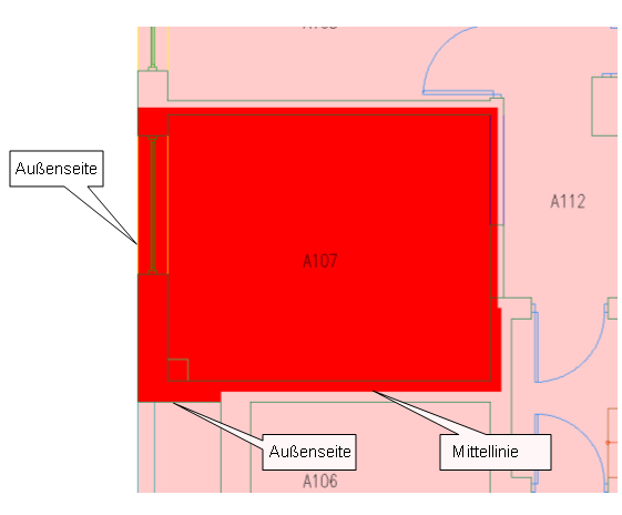 Die Nettoumgrenzungen werden innerhalb der Wände erstellt.