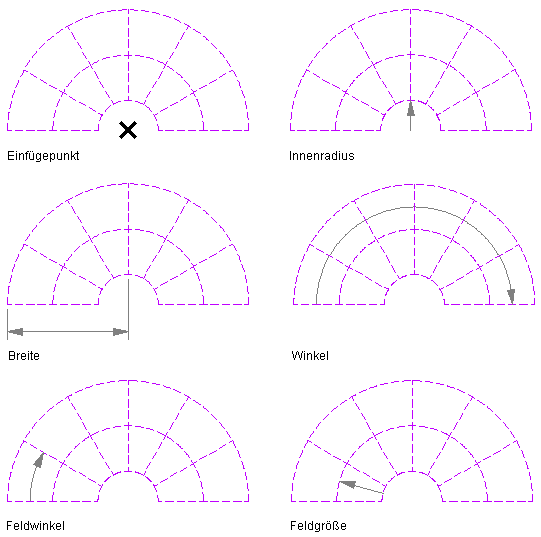 Parameter für radiale Konstruktionsraster