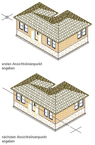 Sie können gebrochene Schnittlinien anlegen, um auch solche Stellen des Gebäudemodells in den Schnitt mit einzubeziehen, die sich nicht auf einer geraden Schnittlinie befinden.