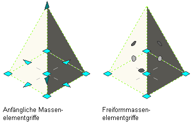 Griffe des ursprünglichen und des Freiform-Massenelements