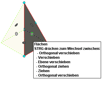 Freies Verschieben der Fläche, während angrenzende Flächen gestreckt werden Klicken Sie auf den Flächengriff, halten Sie die Maustaste gedrückt, drücken Sie einmal STRG, und geben Sie die neue Position der Fläche an. Flächen frei verschieben, angrenzende Flächen strecken