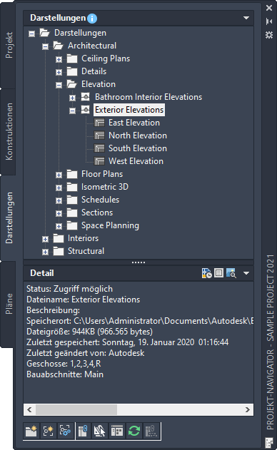 Modellbereichszeichnungen werden über die Registerkarte Ansichten im Projekt-Navigator angezeigt.